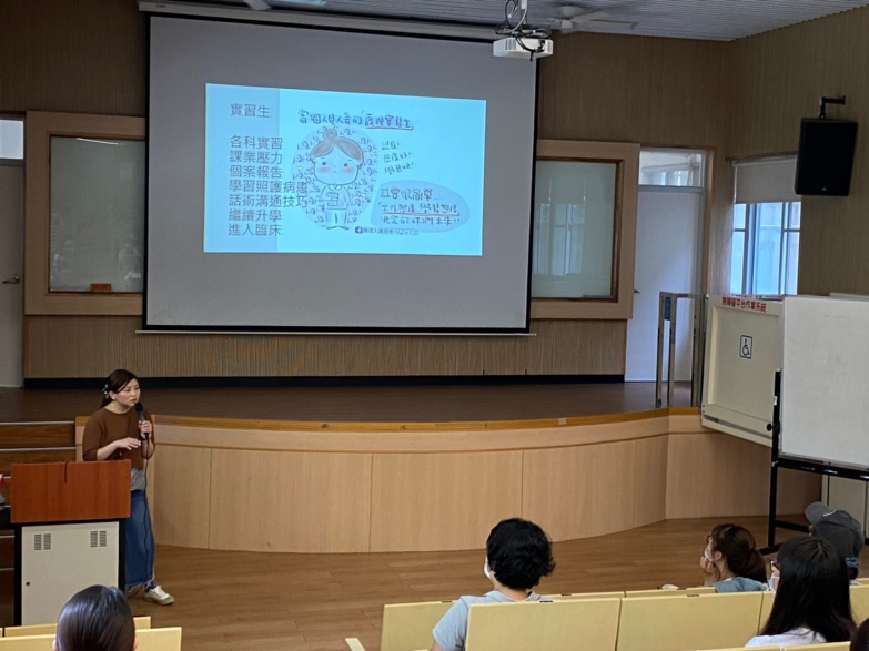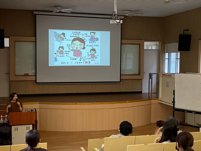 六、 活動內容:本次邀請吳予曦護理師至本校為學生進行演講,與本校同學分享如何了解現階段實習的過程與將來進入臨床可能會遇到的困難,提供自身當時是如何面對與解決,本次活動因新型冠狀病毒COVID-19之疫情,於活動開始前後進行環境消毒,並規定所有參與人員全程配戴口罩,進入教室前協助每位師生測量體溫及使用酒精洗手,並協助學生採梅花座入座。